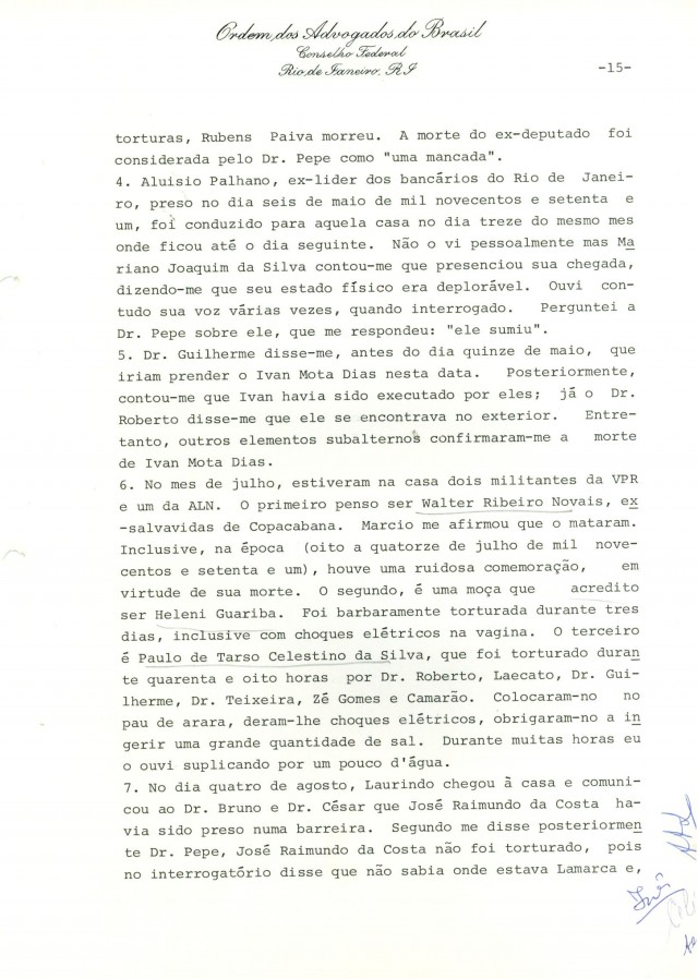 (*) O ex-deputado Rubens Paiva, que constava da lista original de Inês Etienne, foi morto no quartel da Polícia do Exército na Tijuca – sede do DOI-Codi no Rio –, conforme apuração da Comissão Nacional da Verdade, em 2013.