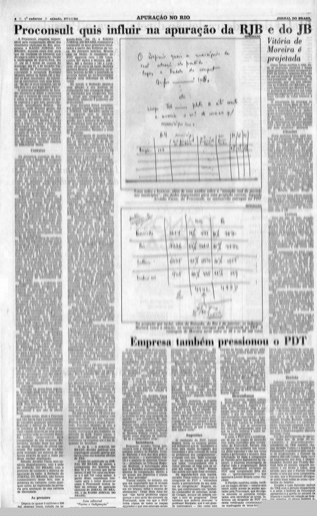 Três dias depois do pleito, os dados do Tribunal Regional Eleitoral (TRE) e da TV Globo davam o candidato do PDS, Moreira Franco, à frente. O candidato do PMDB, Miro Teixeira, aparecia em segundo, e Brizola, em terceiro. Era uma contagem defasada e distorcida, que omitia a votação expressiva do pedetista na capital e na região metropolitana do Rio.