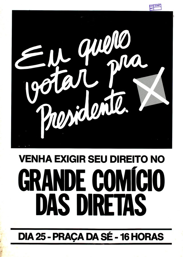 No dia seguinte, 27 de novembro, realizou-se o primeiro comício unificado das Diretas-Já, em frente ao Estádio do Pacaembu, em São Paulo, com participação do PMDB, do PT e do PDT, da UNE, da CUT, da Conferência Nacional da Classe Trabalhadora (Conclat) e da Comissão de Justiça e Paz (CJP) da Arquidiocese de São Paulo. Inicialmente, o comício havia sido convocado apenas pelo PT. No mesmo dia, a CJP planejava realizar uma manifestação contra a intervenção americana na Nicarágua. Depois de muitas negociações, as duas iniciativas acabaram unificadas em torno da bandeira das diretas no comício do Pacaembu. Começou a nascer ali a coordenação suprapartidária da campanha, que contaria com a adesão de mais de 70 entidades da sociedade civil. Um milhão de folhetos foram distribuídos com as palavras de ordem que contentavam todos os organizadores: “Por eleições livres e diretas para presidente da República. Contra o arrocho e o desemprego. Fora o FMI. Contra a agressão dos Estados Unidos aos povos da América Latina”. Quinze mil pessoas compareceram ao comício, dando a largada para a campanha que tomaria conta do Brasil nos meses seguintes. Naquela noite, por coincidência, morreu o senador Teotônio Vilela, um dos grandes nomes da resistência democrática.