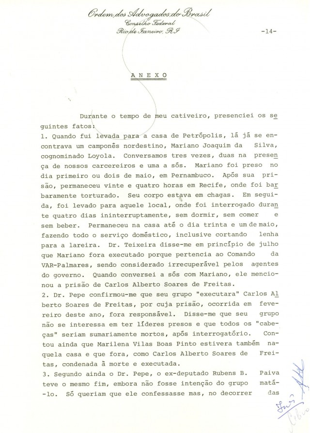 (*) O ex-deputado Rubens Paiva, que constava da lista original de Inês Etienne, foi morto no quartel da Polícia do Exército na Tijuca – sede do DOI-Codi no Rio –, conforme apuração da Comissão Nacional da Verdade, em 2013.