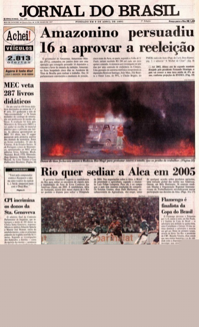 A Câmara dos Deputados aprova em primeiro turno, por 336 votos, a emenda constitucional que permite a reeleição de prefeitos, governadores e do presidente da República. A aprovação ocorre depois de um longo processo de negociação que abriria caminho para a recondução de Fernando Henrique Cardoso ao Planalto na eleição de 1998. A emenda ainda seria votada em segundo turno na Câmara e depois pelo Senado. Nesse intervalo, o governo foi acusado de comprar votos a favor da reeleição.