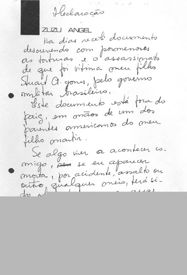 Inconformada com o silêncio da ditadura sobre a morte do filho e da nora, Zuzu Angel iniciou uma corajosa campanha de denúncia dentro e fora do país. Como Stuart herdara do pai a cidadania norte-americana, Zuzu entregou um dossiê ao secretário de Estado Henry Kissinger, que visitou o Brasil em 1976. Também escreveu ao senador democrata Edward Kennedy, que denunciou o caso no Congresso dos Estados Unidos. Em Nova York, a estilista promoveu um desfile de roupas estampadas com anjos feridos e pássaros engaiolados. Atrizes de Hollywood como Liza Minnelli, Joan Crawford e Kim Novak ajudaram a divulgar as denúncias.