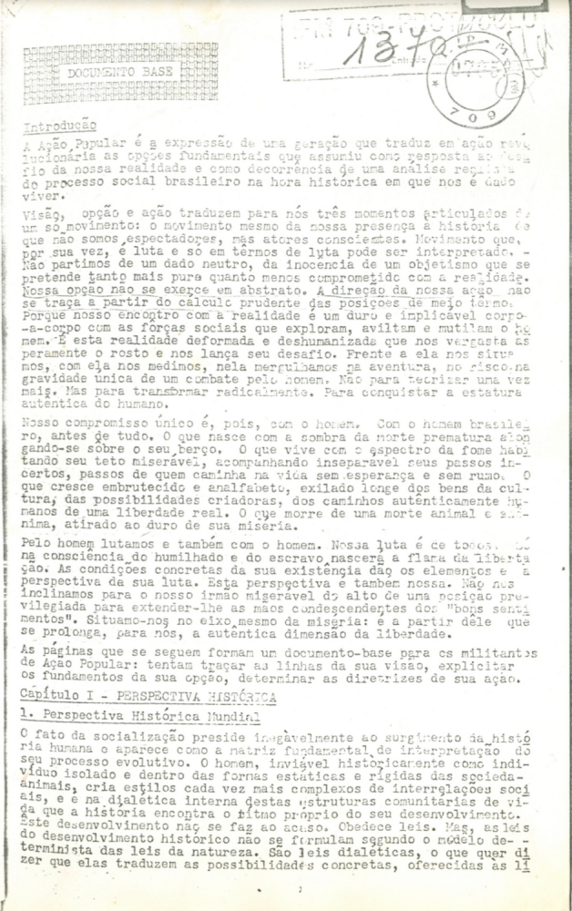 No início dos anos 1960, a crescente polarização da política havia levado duas organizações de origem cristã — a Juventude Estudantil Católica (JEC) e, sobretudo, a Juventude Universitária Católica (JUC), braços da Ação Católica no meio estudantil — a assumir uma posição cada vez mais próxima das opções políticas defendidas pelas forças de esquerda.