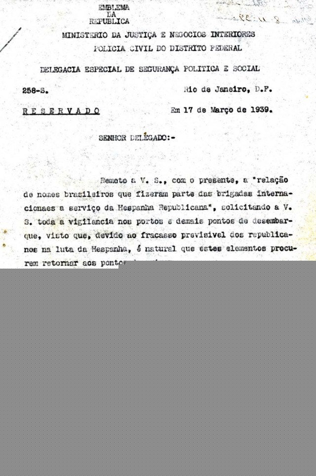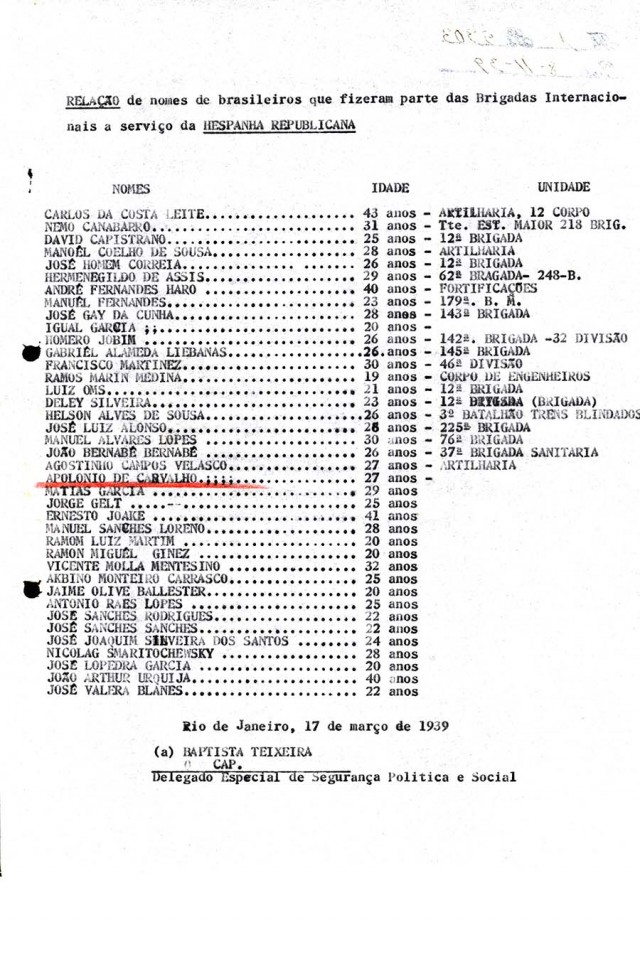 Independente de seus governos, os partidos e personalidades progressistas de todo o mundo, percebendo o que estava em jogo na Espanha — a luta pela liberdade, pela justiça social e pelo socialismo —, mobilizaram-se. Foram organizadas as Brigadas Internacionais, com cerca de 40 mil voluntários de 50 países dispostos a lutar contra o fascismo naquele país. Entre eles, estavam alguns brasileiros: Alberto Bomilcar Besouchet, Apolônio de Carvalho, Carlos da Costa Leite, David Capistrano da Costa, Delcy Silveira, Dinarco Reis, Eneas Jorge de Andrade, Eny Silveira, Hermenegildo de Assis Brasil, Homero de Castro Jobim, Joaquim Silveira dos Santos, José Gay da Cunha, José Homem Correa de Sá, Nélson de Sousa Alves, Nemo Canabarro Lucas e Roberto Morena. E também emigrantes que viviam no Brasil: Ramón Prieto Bernié, Libero Battistelli, Francesco Leone, Ernest Yosk e Wolf Reutberg.