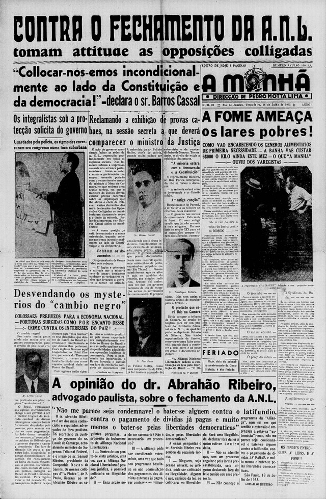 Assustados com o crescimento vertiginoso dos núcleos da ANL em todo o país, a igreja católica, banqueiros, industriais, representantes de empresas estrangeiras e jornais como “O Globo” e “O Jornal” já faziam campanha por sua interdição havia meses.