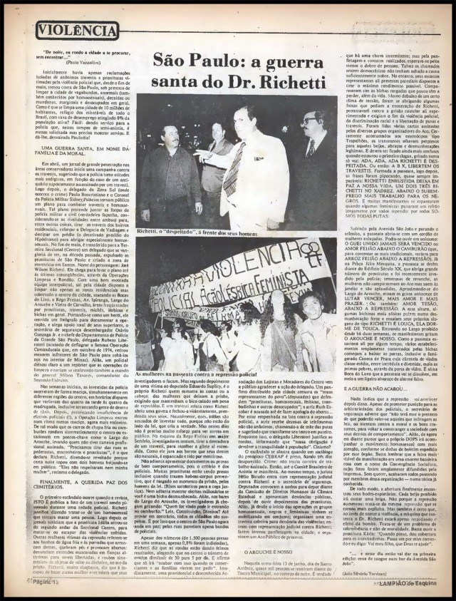Participantes de várias entidades, como o Grupo SOMOS de Afirmação Homossexual, o Movimento Negro Unificado, a Ação Lésbica-Feminista, o Núcleo de Defesa à Prostituta, a Associação de Mulheres, o Grupo Feminino 8 de Março, a Convergência Socialista, o Grupo de Mulheres do Jornal “O Trabalho”, o Departamento Feminino da USP – DCE Livre, Eros, a Ação Homossexualista e Nós Mulheres, distribuíram Carta Aberta à População em que explicavam: “Hoje estamos dando uma resposta concreta a essa onda de violência desencadeada pelos responsáveis pela Segurança Pública: um secretário de Segurança, um diretor do departamento de polícia e um delegado vêm aterrorizando prostitutas, homossexuais, travestis, negros e desempregados com prisões arbitrárias, espancando e até assassinando-os”.