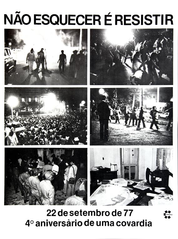 Na noite de 22 de setembro de 1977, cerca de 2 mil estudantes de São Paulo e delegações de todo o país participam de ato público pela recriação da União Nacional dos Estudantes (UNE) em frente ao Tuca, teatro da Pontifícia Universidade Católica (PUC), e são surpreendidos pela ação violenta de 3 mil policiais.