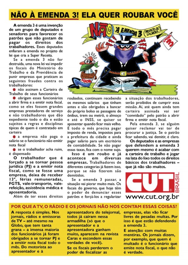 O presidente Lula vetou a Emenda 3 por perceber que ela abriria brechas para o descumprimento da legislação trabalhista: o empregador deixaria de assinar a carteira de trabalho de um potencial funcionário, compelindo-o a abrir mão de direitos como férias, 13º salário e outras garantias, para fundar uma microempresa.