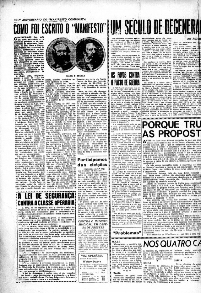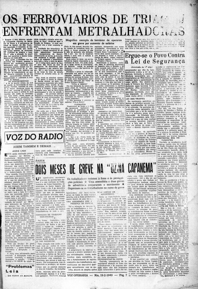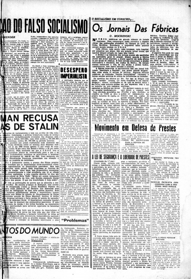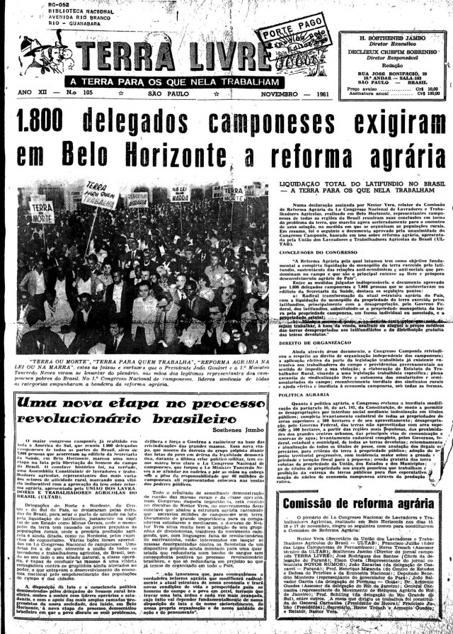 Mesmo na ilegalidade, o Partido Comunista do Brasil (PCB) mantém-se ativo e lança dois jornais: o “Voz Operária” e o “Terra Livre”. O primeiro é voltado para as mobilizações operárias, divulga as principais teses do partido e do movimento comunista; o segundo nasce para ser o principal instrumento de mobilização do PCB no campo.