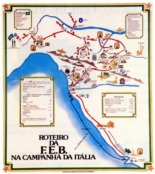 A partir da conquista do monte Castelo, as Forças Expedicionárias Brasileiras avançariam rapidamente. Em 5 de março conquistaram Soprassosso e Castelnuovo. Tomaram Montese na manhã do dia 15 de abril, na mais sangrenta batalha enfrentada por nossos soldados. Seis dias depois, chegaram a Zocca, enquanto os Aliados entravam em Bolonha.