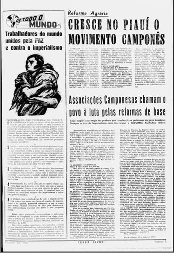Campo Maior Dezembro de 1963Em Campo Maior, a 80 quilômetros de Teresina, foi fundada em 1962 a Associação dos Lavradores e Trabalhadores Agrícolas. Em 1963, foi criado o Sindicato dos Trabalhadores Rurais de Campo Maior. As duas entidades prestavam apoio aos camponeses da região, auxiliando-os nas negociações dos contratos de arrendamento.